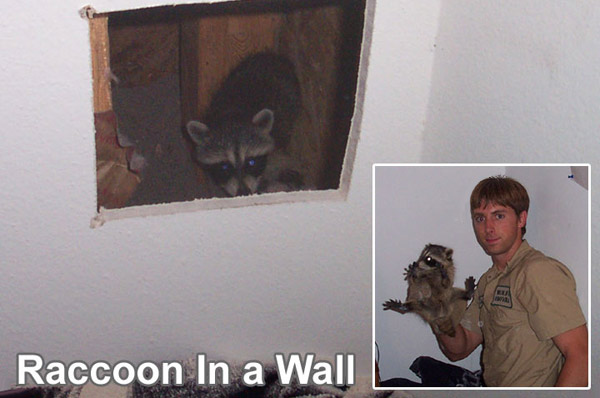 Raccoons are known to live in human dwellings and mostly dwell in torn walls and the attic. These places provide a warm and safe place for them to live and offer close proximity to food. They feed on garbage food and any human-influenced food. Raccoons can cause a lot of damage and become a nuisance to humans. Once in the house, they will tear up pipes, walls and rip open ducts. They also scare your pets – sometimes they will even kill cats and other small pets - and tip over garbage cans, leaving you a nice smelly mess to clean up.