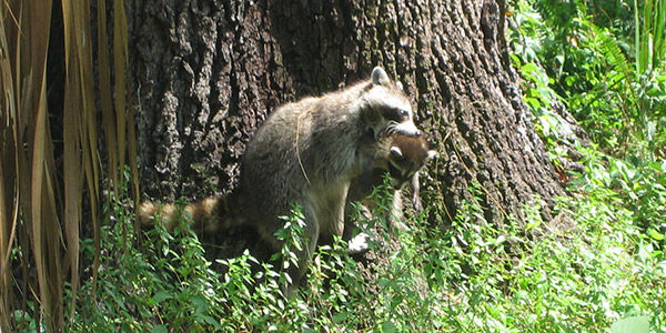 One oddity in the behavior of the raccoons is that they will generally douse their food before eating, and will use their highly sensitive forepaws to remove any parts that they don’t want to eat and can even use this sensitivity to find earthworms in the ground.